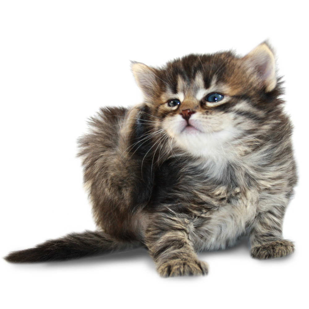 Она родилась второй и была самой маленькой. Зато сильно выделялась среди полосатых котят.. спинка абсолютно чёрная, полосатыми были только лапки. Мордашка более контрастная, а ещё её лобик украшает буква «М» отсюда и прозвище. Даже голосок более писклявый. Со временем она значительно посветлела и стала самой крупной и пушистой.